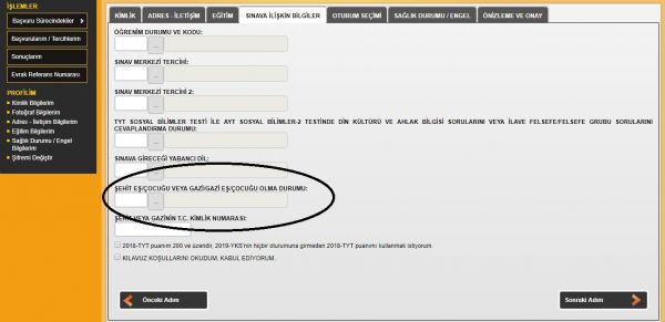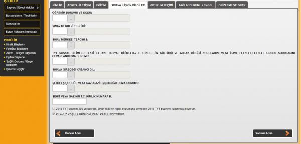Beklide en kafa karıştıran kısım sınava ilişkin bilgilerdir. Öğrenim durumumuz, sınav merkezi, 2.sınav merkezi, din kültürü muafiyeti, dil ve şehit yakını olma ile ilgili durumlarımız bulunmaktadır.