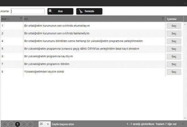 Öğrenim durumu içeriği aşağıdaki gibidir. Lise son sınıf öğrencisiyseniz kod 1 , tercih yapmadınız ya da yapıp yerleşmediniz ise kod 4’ü seçmeniz gerekecektir.