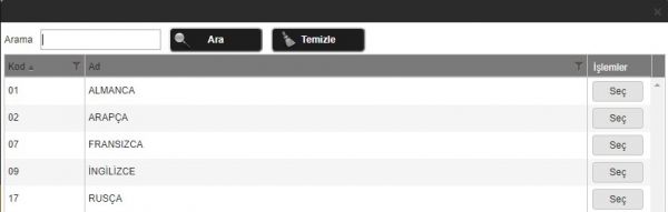 Dil sınavı için beş seçenek yer almaktadır. Almanca , Arapça , İngilizce, Rusça ve Fransızcadır. Buradaki önemli husus şudur ki; dil sınavında kitapçığınız siz hangi dili seçerseniz ona göre hazırlanacaktır. Almanca seçtiyseniz kitapçığınız Almanca olacaktır.