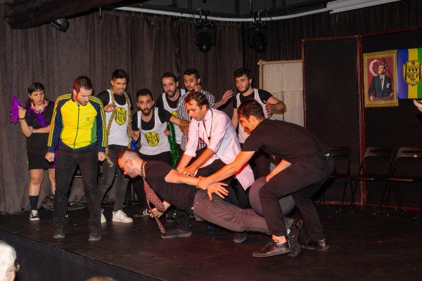 Geçen sene haziran ayında prömiyer yapan At Gözlüğü , 18 Ekim’de İstanbul Komedi Festivali ile rüzgarını estirmişti. Daha sonra Bahçeşehir Üniversitesi’nde oynanan oyuna ilgi giderek arttı. Gerçek hayatla hayal dünyasının mizahi yansıması olan bu eğlenceli oyunda, dekorundan, kostümüne herşey ekibin kendi çalışması.